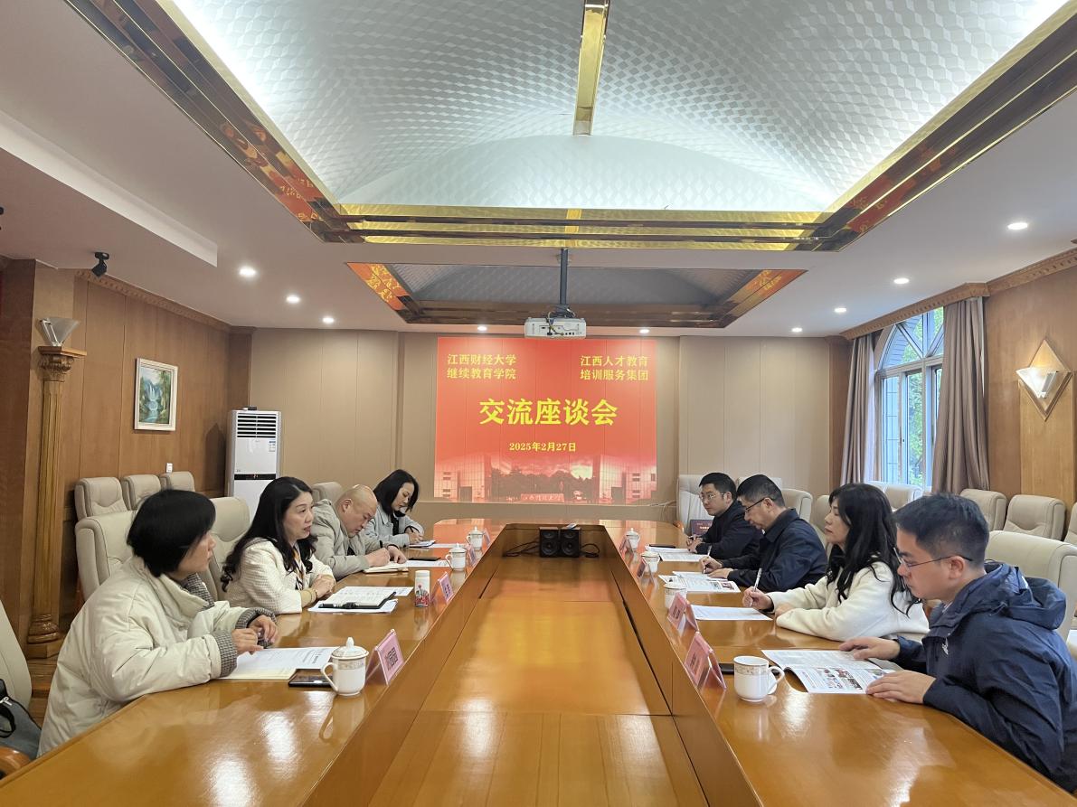2月27日下午,江西人才教育培训服务集团培训事业部党总支副书记、总经理何啸鸣,党总支委员、副总经理陶萍等一行来院交流座谈。91天堂 副院长兰芳及相关部门负责人参加了座谈会。座谈会由兰芳主持。